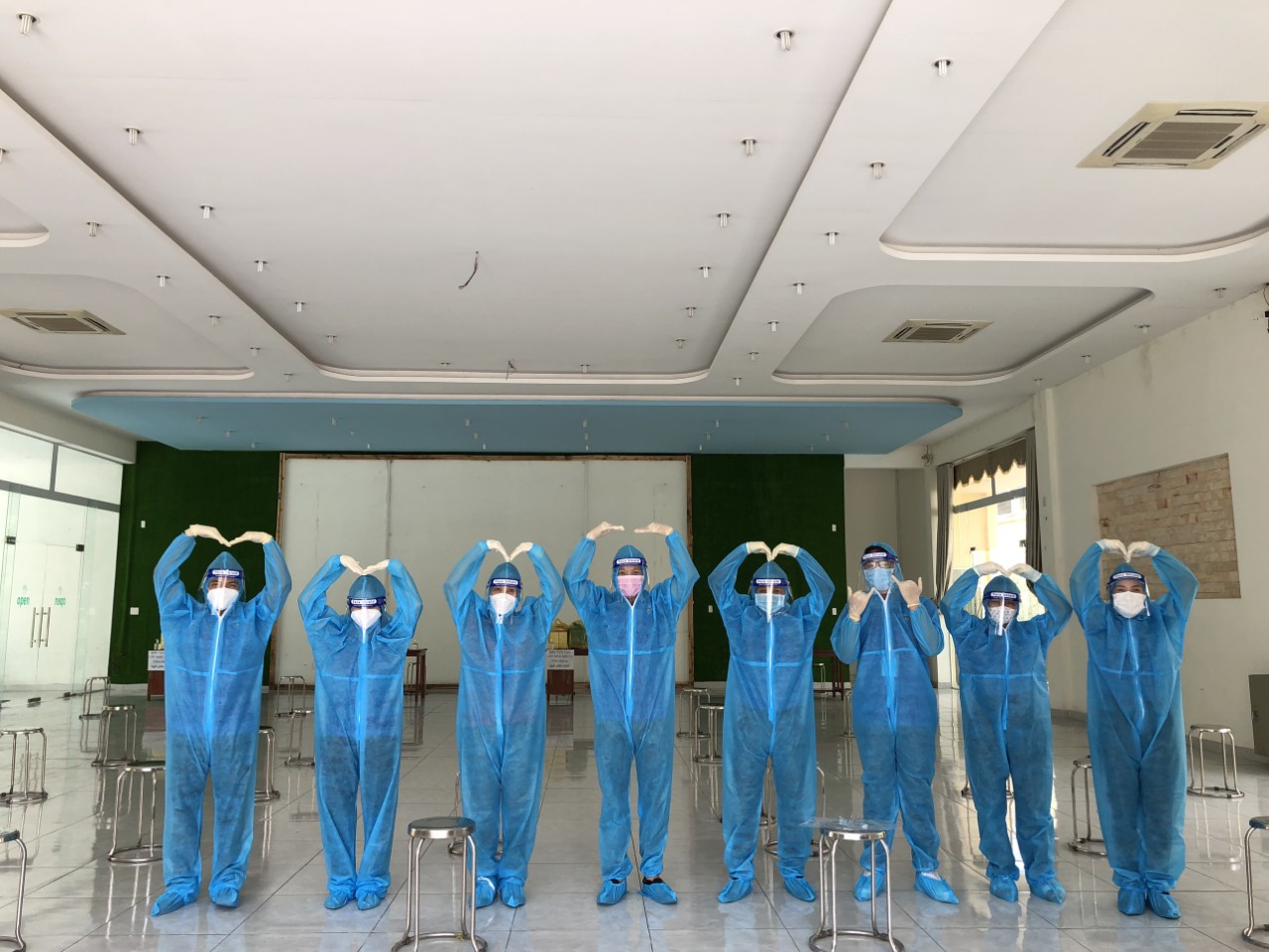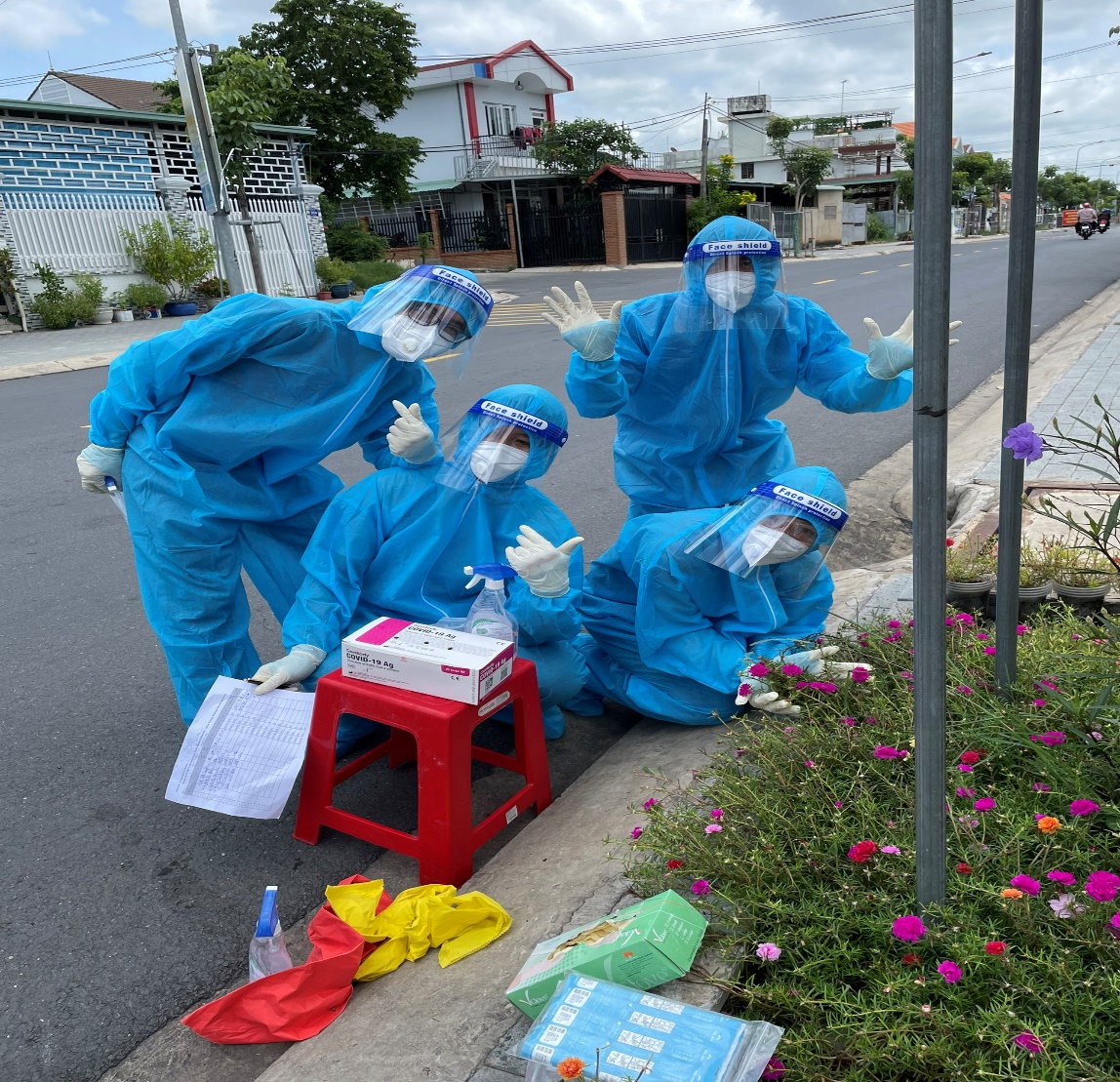 Phút thư giãn sau khi hoàn thành nhiệm vụ của các tình nguyện viên Nguyễn Văn Cừ