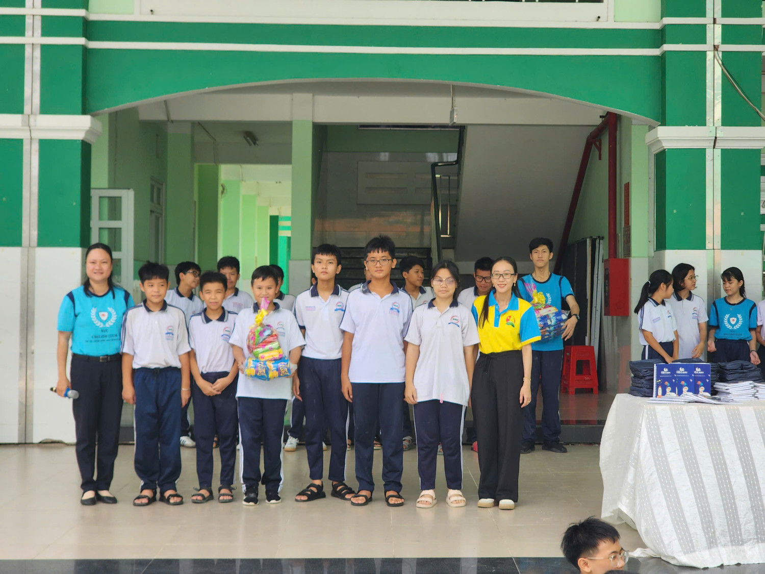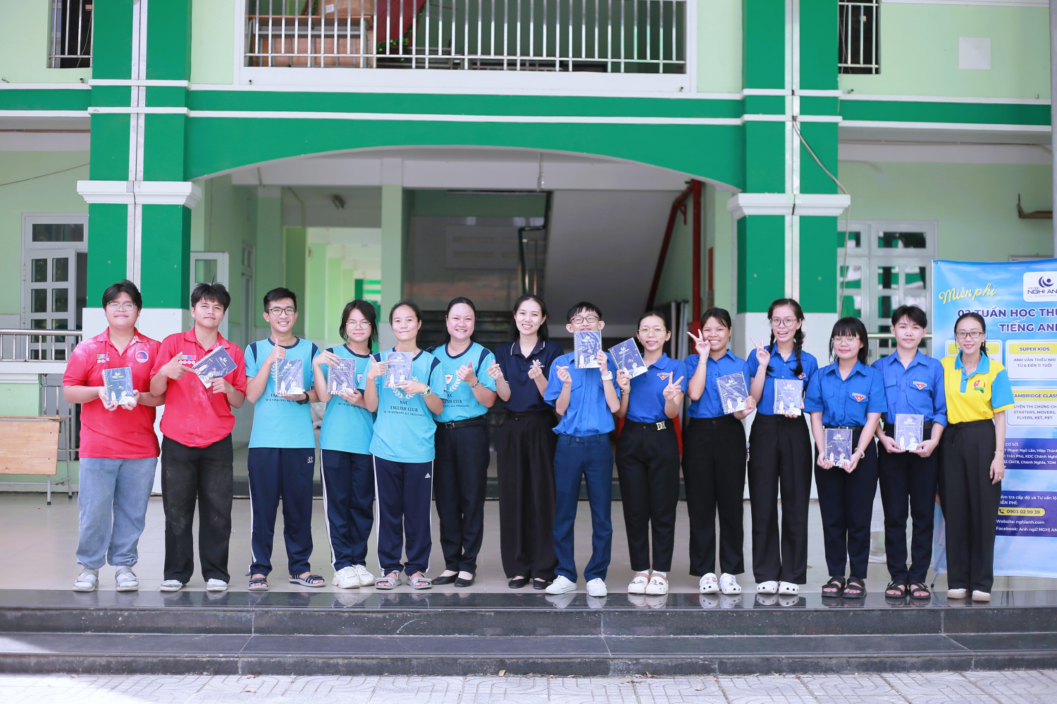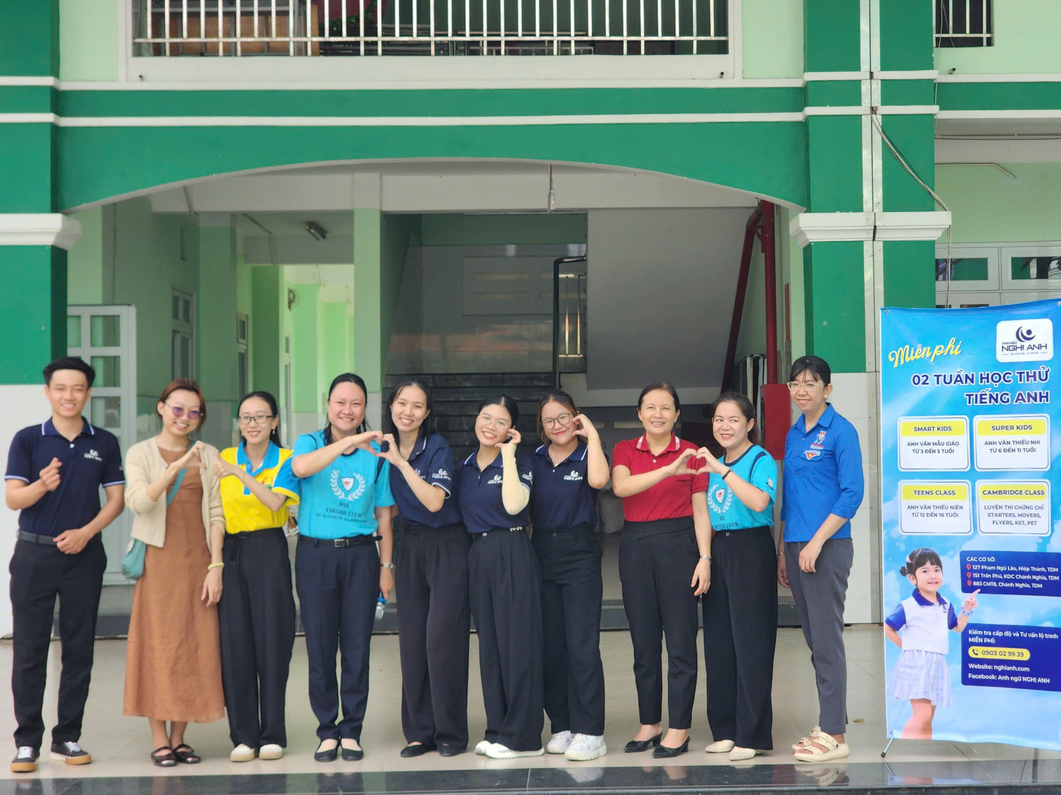 Hình lưu niệm thể hiện sự gắn kết giữa CLB tiếng Anh, liên Đội trường THCS Nguyễn Văn Cừ và Trung tâm Nghị Anh.