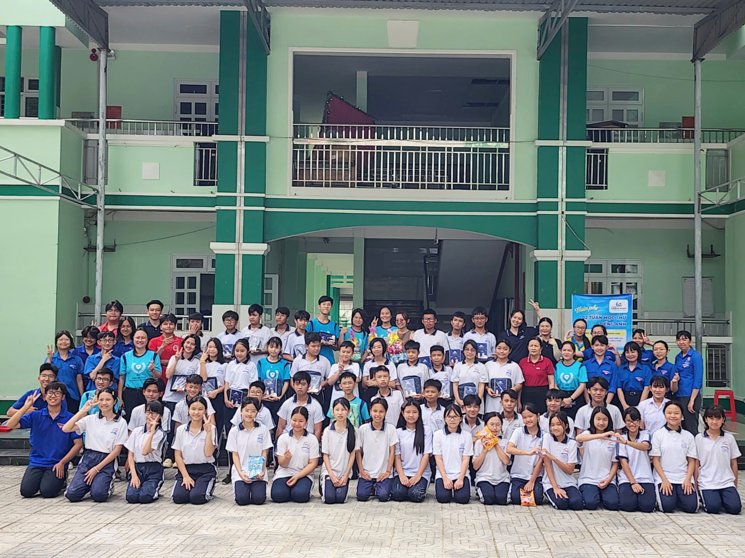 Trao quà lưu niệm cho các cựu học sinh là tình nguyện viên hỗ trợ trong buổi sinh hoạt.