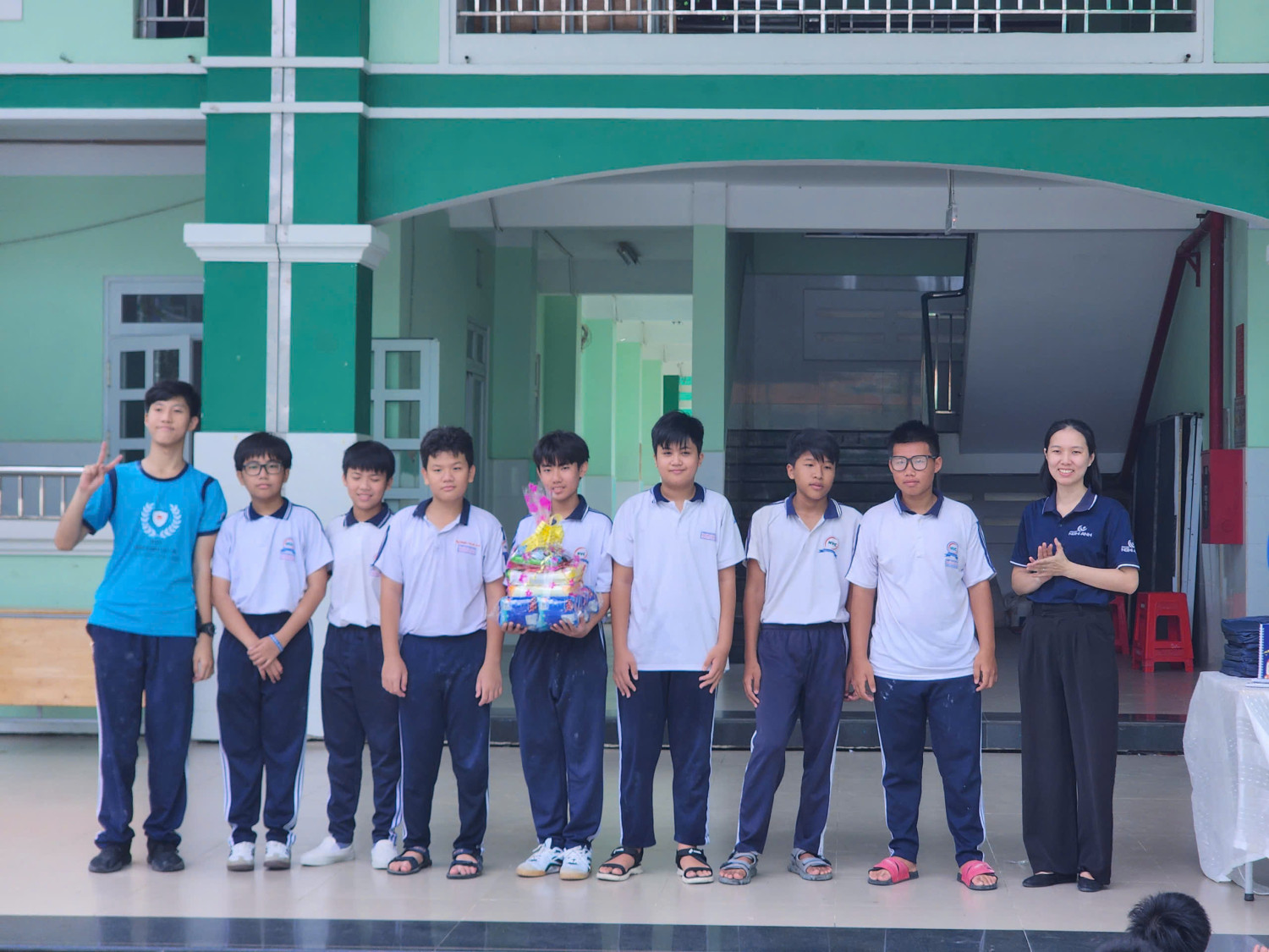 Cô Thanh Hoài - đại diện Trung tâm Nghị Anh trao quà cho đội đạt giải Nhì.