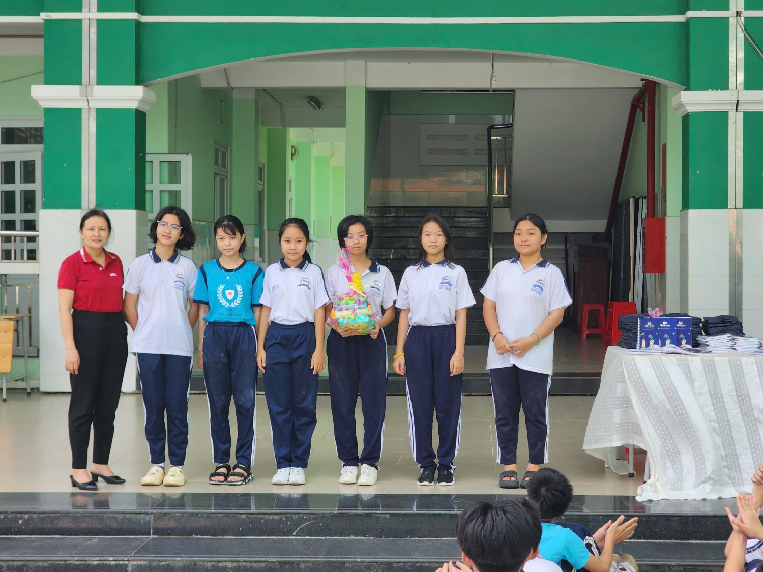 Cô Anh Thư - TPT Đội trao quà cho đội đạt giải Nhất.