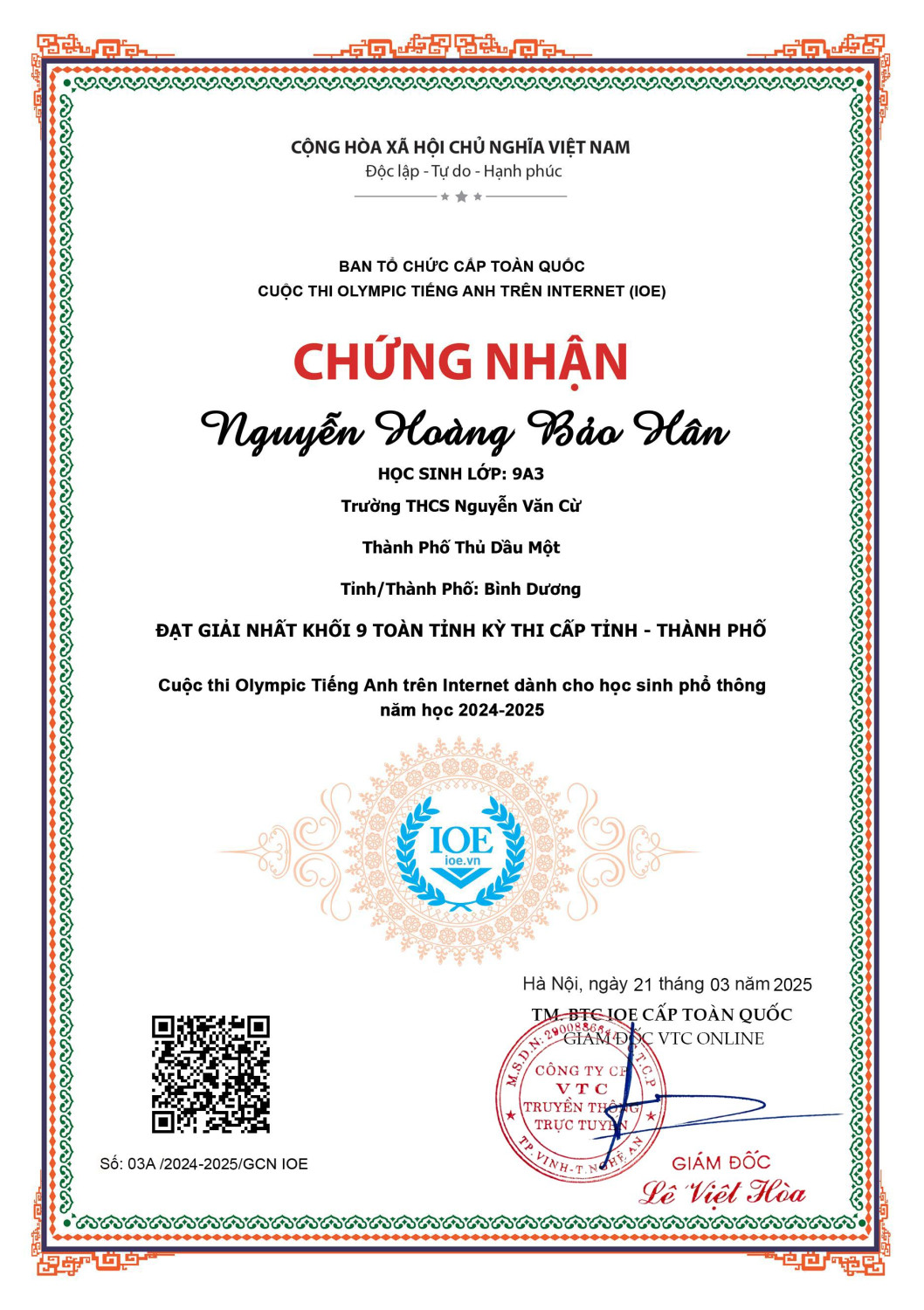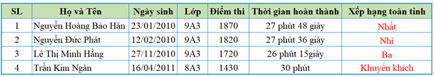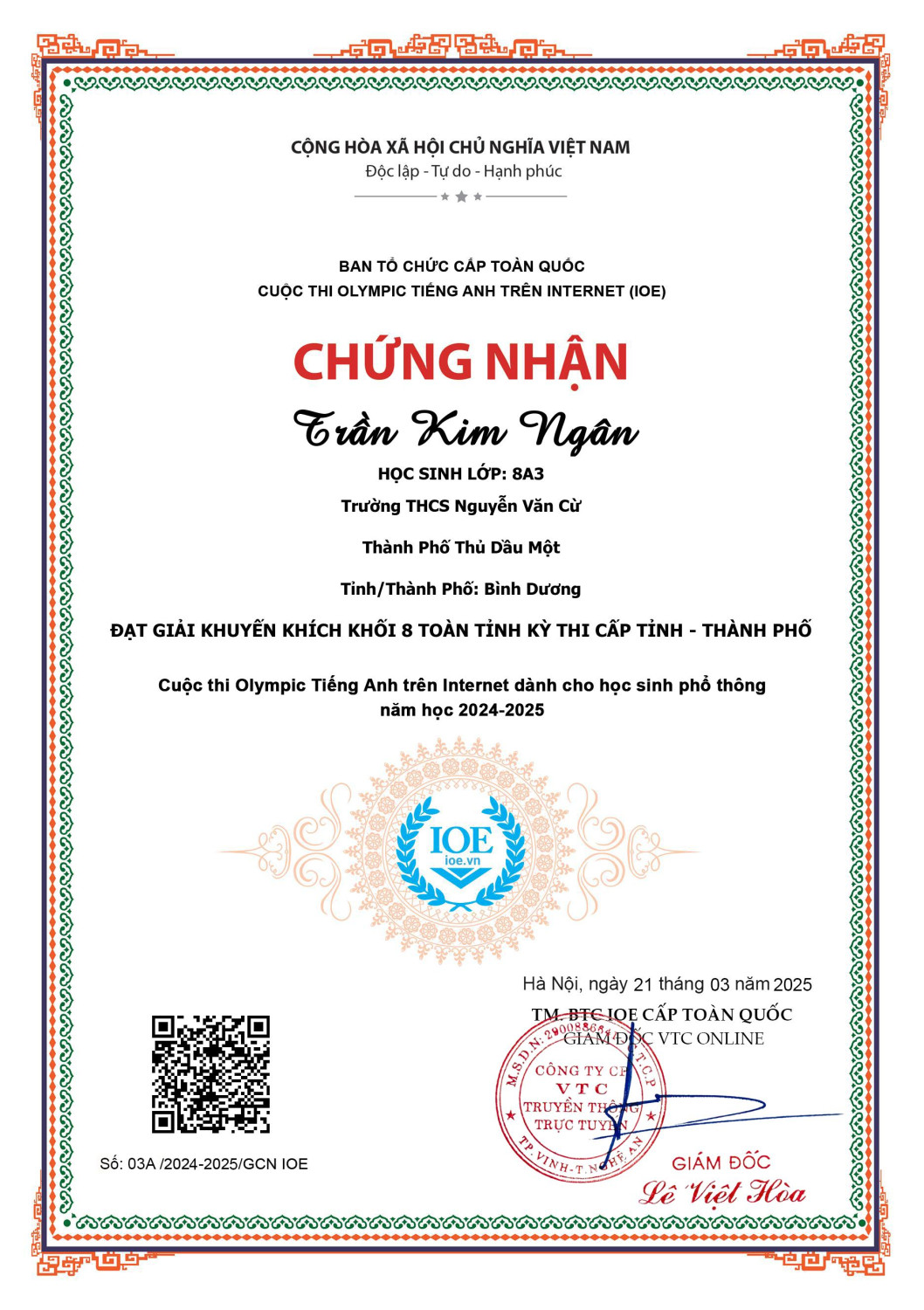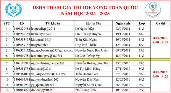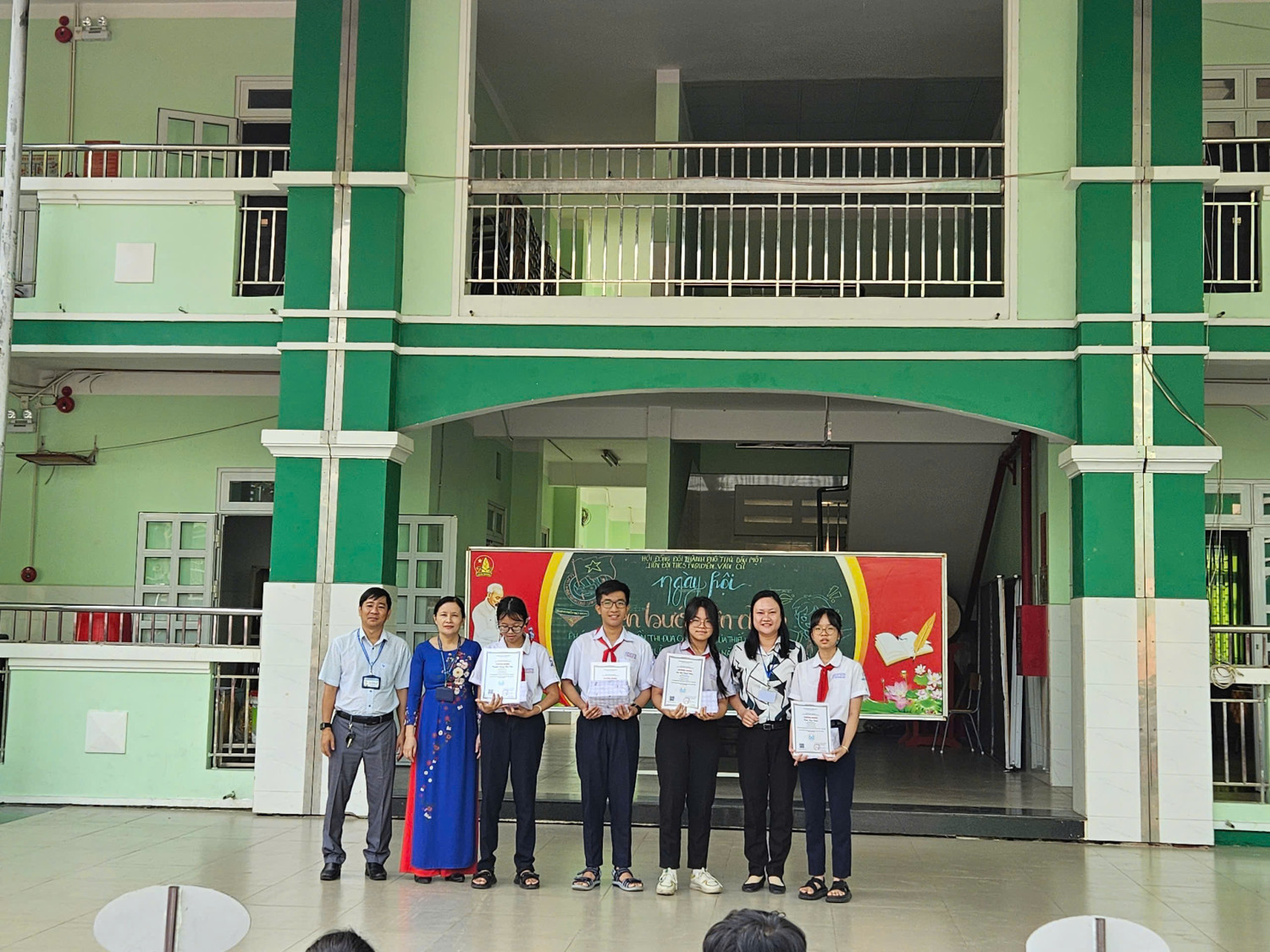 Bên cạnh những phần quà đến từ phía Ban giám hiệu nhà trường, trung tâm Anh ngữ Nghị Anh đã trao xuất học bổng học phí trị giá 1.000.000vnd cho em Trần Kim Ngân, lớp 8A3. Các em học sinh sẽ tiếp tục ôn tập để tham gia vòng thi cấp Toàn quốc, dự kiến tổ chức vào sáng ngày 03/4/2025 với danh sách cụ thể như sau:
